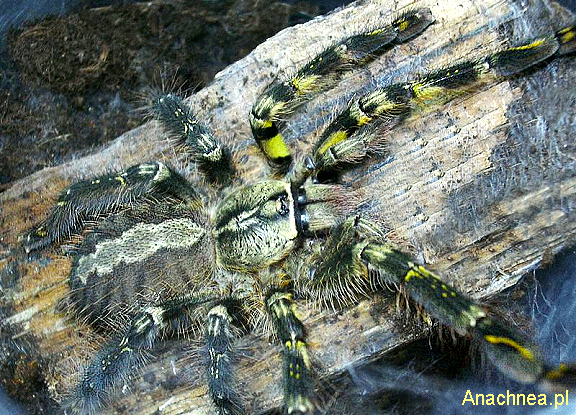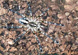 - Poecilotheria屬是一群十分華麗的樹棲型毛蜘蛛,大約有15個種類之多,全部分佈在印度和斯里蘭卡兩國.在市場上比較常見的種類是印度華麗雨林(P.