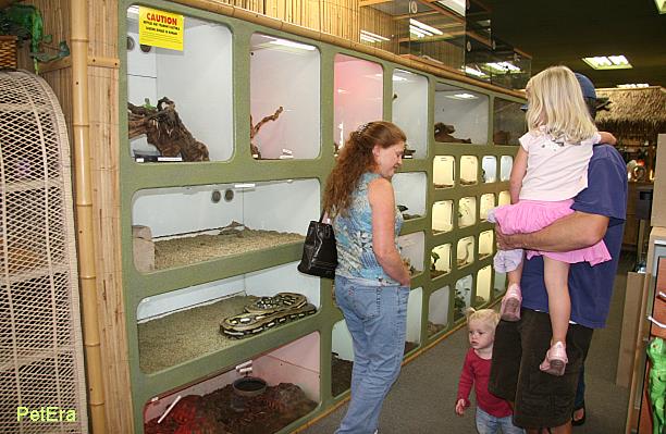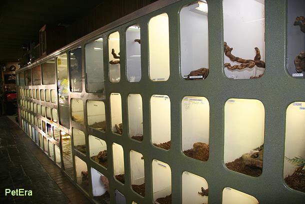 櫃檯旁階梯形式的幼蛇展示箱