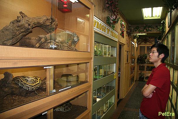 在廣大的空間中,右半邊店面規劃的是活體展售區,不論是成體與幼體都各得其所,享有奢侈的空間,整齊,寬敞,明亮,是這家店的基調,也因此每一隻爬爬都十分健康活潑.當然也就吸引了相當多的顧客來參觀.