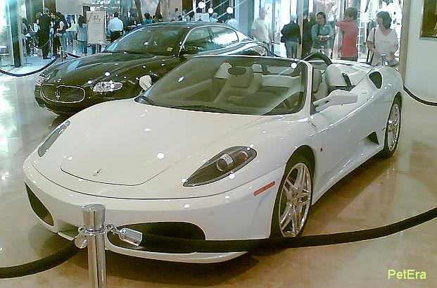 離開爬店之後就順便到附近的South Coast Plaza逛逛,這是一個相當高級的購物中心,正巧碰上義大利跑車展,三大頂尖義大利車廠的跑車現場同台較量,這些名車只要能夠見到隨便一輛都相當不容易,沒想到竟然還能全部放在一起展出,實在是大飽眼福.據管理員說,最低單價是25萬美金,當下又讓站長想到那句千古名言:"錢到用時方恨少"