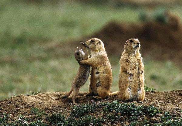 city,也可見佔地之廣.牠們可以開鑿出數十尺深的隧道系統,做為棲息與儲存食物的處所.因此牠們並不常遷移.由於牠們盤據的區域無法耕種或放牧,因此美國政府和民間都將北美土撥鼠視為害獸,長期有計畫的消滅牠們,直到近年因為數量已降低到瀕危的程度才又回過頭來加以保護..牠們其實是與松鼠同科的動物,與一般松鼠或是花栗鼠是親戚,只是牠們是地棲而不是樹棲.