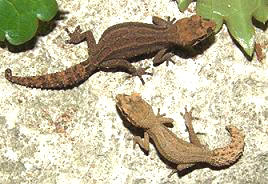 天.一年可以產卵3-5次.雌性可以儲存雄性精子,所以交配一次就可應付一季的產卵需要.幼體成長迅速,只要5-6個月就可以成熟進行繁殖.基本上松果尾是體健好養的守宮,繁殖的難度較低,價位也不高,是頗為適合的入門守宮.