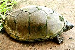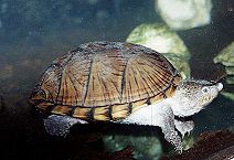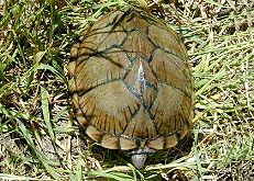 屋頂龜由正面看龜甲呈三角形                        麝香龜類背甲肋盾特大,椎盾很小