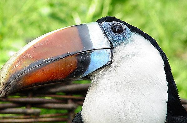 紅喙巨嘴鳥老成個體色彩會退化巨嘴也會磨損 |