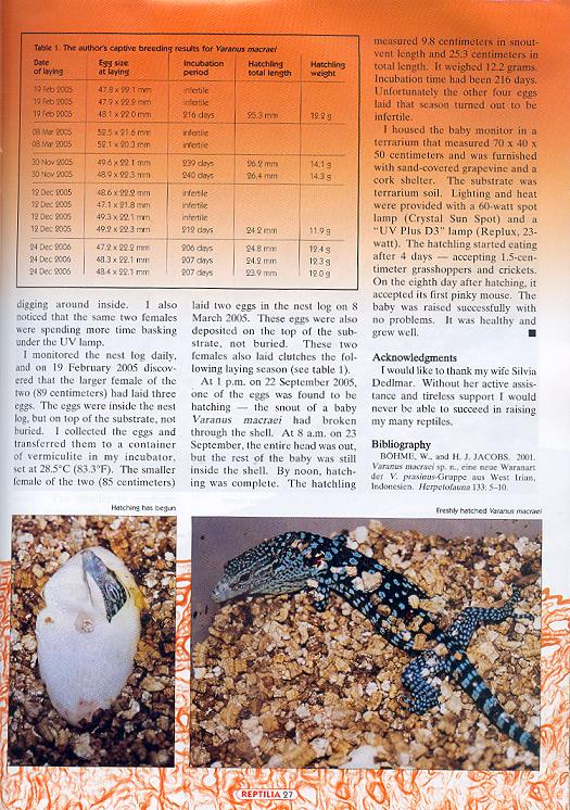 Keeping and Breeding the Blue Tree Monitor, Varanus macraei