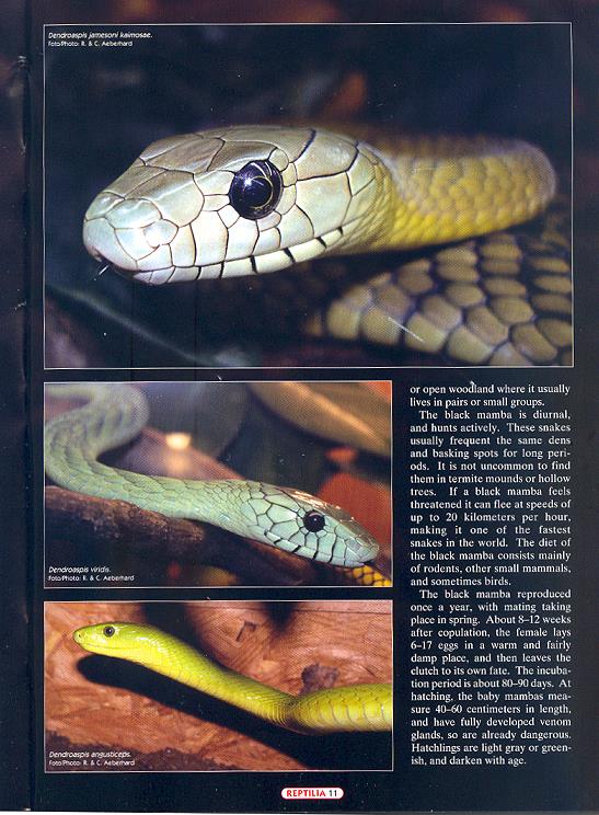 Dendroaspis viridis, Dendroaspis angusticeps and Dendroaspis jamesoni