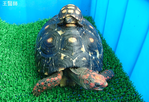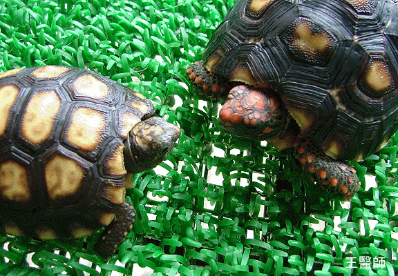 櫻桃紅腿是我很喜歡的一種陸龜,除了自己養的十幾隻外,也看過不少其它的櫻桃紅腿,其中也不乏身體紅色光澤鮮紅亮麗的極品櫻桃紅腿,但卻從沒看過像這隻全身沒有任何紅色的鱗片,原本應
