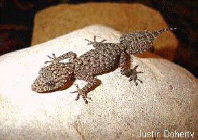 澳洲葉尾守宮幼體與成體體色差異不大                       在野外通常棲息於砂岩堆中