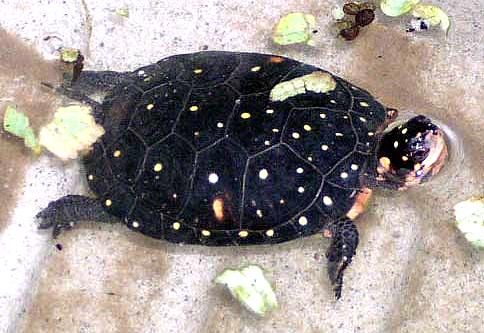 在北美原產地星點龜通常會在秋季躲入水底泥沼中冬眠.並非在地洞中冬眠,比較與眾不同.雌龜大於雄龜,每窩可產3-5顆蛋,孵化期依溫度由45至70天不等.在澤龜中星點龜算是高價的龜類.如果希望養到斑點比較多的個體,只能由幼體養起,台灣進口的成體都經過國外挑選,滿天星的成體幾乎都留在國外.不會出到台灣來.