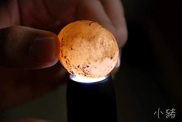 而有受精的蛋因為胚胎血管的發育很明顯可以看的出是紅色 |