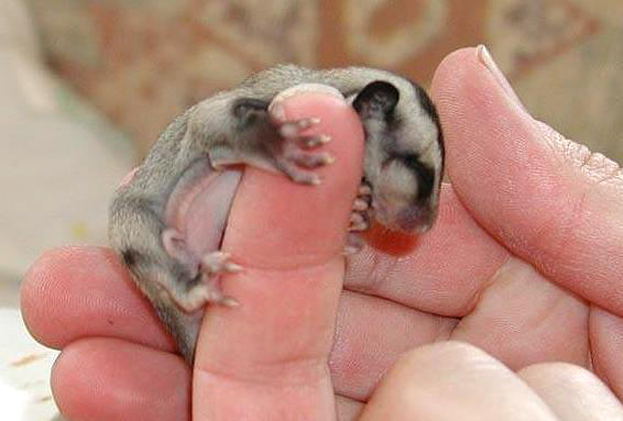 由於牠們需要很高的活動量,所以籠子裡可以加上一個倉鼠用的轉輪供牠們運動.或是讓牠們在屋子裡自由活動.雄性可以由位於肚臍位置的睪丸來辨認.成熟的個體每年可以交配2-3次,每次可以產下1-2隻幼體,懷孕期大約2-3週,初生幼體會自行爬入雌性的袋囊中,咬住乳頭不放約40天左右,之後會繼續在袋囊中成長一個月左右.然後會攀住母親到處活動.幼體在四個月左右就可以完全斷奶離開母親自行進食.這時的幼體也需要經常接觸以培養與飼主的緊密關係.