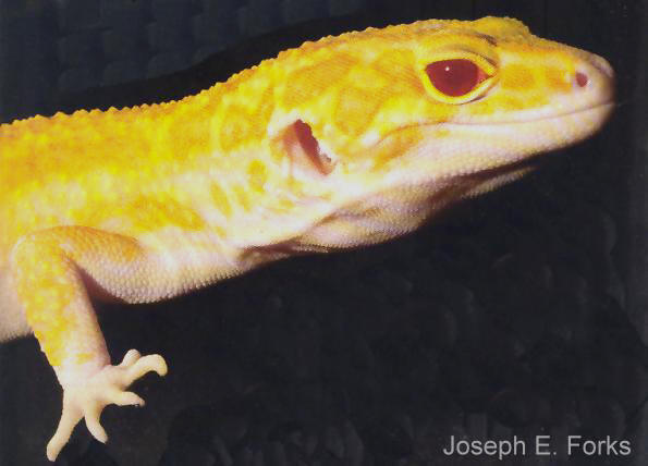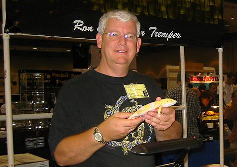 美國是養殖豹紋守宮的第一大國,也是第一大市場.許多名家如Albey Scholl, Craig Stewart,和Charles Bona等人各據一方,把豹紋守宮的改良帶進了藝術的境界.不過這些人主要是在美國國內出名,如果要說舉世聞名的豹紋至尊級人物,就非Ron Tremper莫屬.他是美國繁殖豹紋守宮的天王級人物,就算不是世界第一,美國第一應該也當之無愧.這位天王 至尊站長在幾年前的美國爬蟲展見過一次,只是當時站長有眼不識泰山而失之交臂,未能當面討教一二,遺憾至今.他的豹紋守宮在歐洲,日本,美國都有固定的市場. Tremper先生在二十多年前曾經擔任加州Fresno動物園爬蟲館館長,1989年前開始經營自己的爬蟲養殖場直到今天,他的其他爬蟲養殖並沒有多少過人之處,唯獨在豹紋守宮上創出了一片天.Tremper的豹紋養殖場專 攻白化豹紋,當年轟動世界爬壇的巨人白化豹紋守宮Moose正是他老人家的心血結晶.這隻個體的後代倒是有進入台灣,也得到第一屆豹紋守宮比賽的總冠軍.真是所向無敵.目前Tremper當然是傾全力發展白化胡蘿蔔尾的新品種.站長現在會介紹他當然是因為他老人家在最熱門的胡蘿蔔尾豹紋的育種上又獲得了堪稱劃世紀的重大的突破. 許多養過白化豹紋守宮的人也許都沒注意到,牠們雖名為白化,長得也像白化,但是實際上瞳孔卻是黑色的而不是白化應有的紅眼.所以這些白化個體實際上只能算是黑眼白子,也就是說,牠們的白化只是體色上的變異,而不是基因上的缺陷變異.而這些 黑眼白化個體首次出現也只是1999年的事.發展到今天也不過5-6年的時間.在2004年3月Tremper先生發表了全世界第一隻紅眼白子豹紋守宮,之後他便極力進行紅眼基因的利用;同年十一月他發表了胡蘿蔔尾的最新一代品系,稱為A.P.T.O.R.也就是綜合胡蘿蔔頭,胡蘿蔔尾,超級橘化,無斑紋,白化,巨人等六種基因改良而成的超級豹紋守宮,全紅的尾巴和毫無雜班的頭部 及軀體色澤,站長只能以"此物只應天上有,人間那得幾回聞"來形容,令人嘆為觀止.每隻售價美金750元. 然而,APTOR不是結束,而只是開始,Tremper先生竟然把紅眼基因融入APTOR之中而培育出更加驚人的曠世力作R.A.P.T.O.R.,也就是Ruby-eyed.Albino.Patternless.Tremper.ORange.的縮寫,這一隻 才是本文的主角,集合七種基因所培育出的超級巨星,紅寶石豹紋守宮,亞成體在美國預售價每隻1000美金.這一隻超級巨星要到今年三月才會正式推出.所以目前只公佈了頭部的照片.屆時當然又要掀起一陣豹紋旋風.從此,豹紋守宮的人工繁殖又將進入一個新的境界.台灣有至於豹紋守宮繁殖的人不妨留意後續的發展. *All pictures are copy righted property of Ron Tremper.*