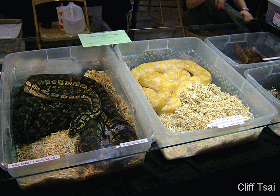 展場內show出了各式的蛇類果然蛇類還是美國爬蟲的最大宗球蟒尤其是令人心癢難耐王蛇奶蛇類也不計其數