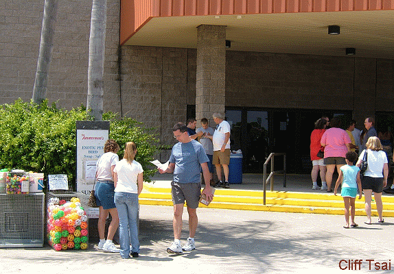 今年四月初在佛羅里達的坦帕灣舉辦的爬蟲展規模雖然不算大還是令人期待萬分入口的標語以及售票亭都小的可愛樓梯旁還有人已經在場外兜售起來了有如迷宮的展覽場要全部走完需要一些體力和記憶力有許多小孩看的出神年齡層分佈很廣