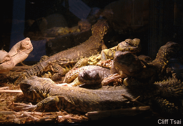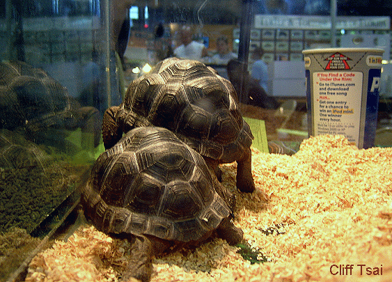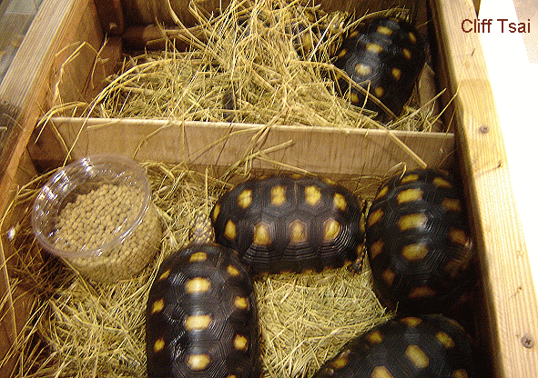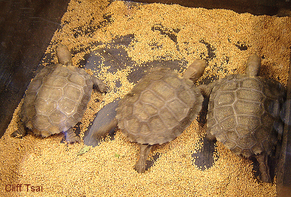 烏龜類舉目所及大小蘇卡達豹龜紅黃腿荷葉以及木紋龜紅頭蛇頸龜還有一些星點龜巴西龜真鱷龜紅腹以及尼彩龜因為箱龜在佛州販售是違法的所以館內看不到半隻箱龜還有三隻可愛的小靴腳陸龜和亞達伯拉象龜