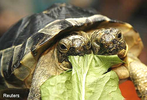 雙頭陸龜的機率遠低於蜥蜴類 |