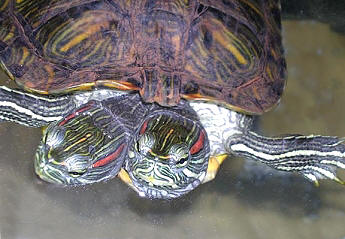 根據專家的研究,雙頭龜應該是雙胞胎的胚胎突變融合而成的.在野外存活的機率非常低.傑納斯在人為的照料下活了十年,應該是當今最老的雙頭陸龜了.