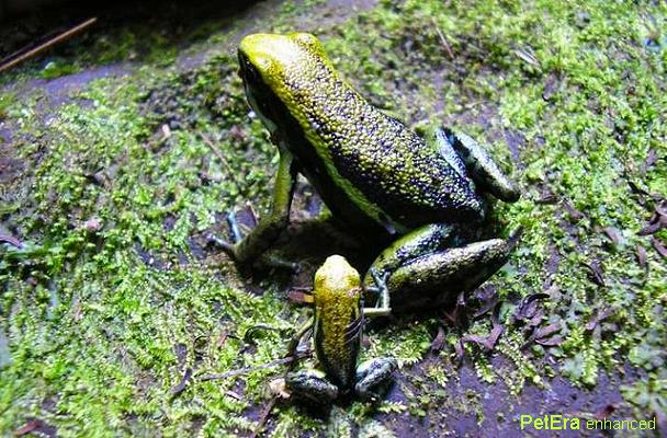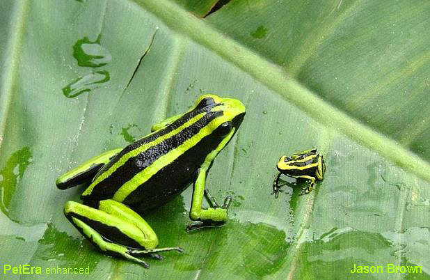 三線箭毒蛙雌蛙體型比雄蛙大很多 |