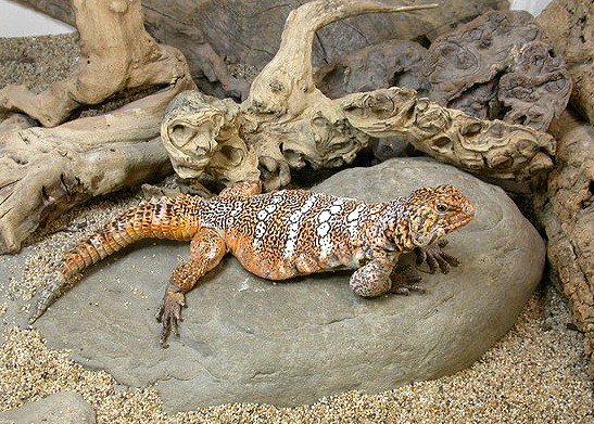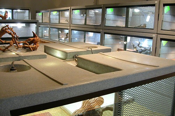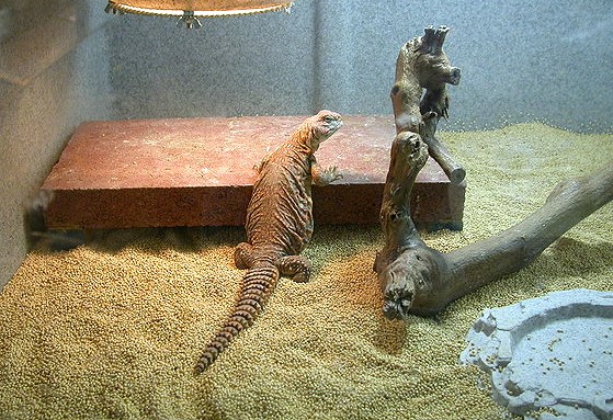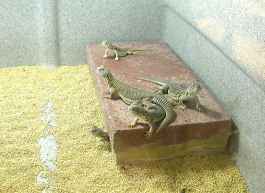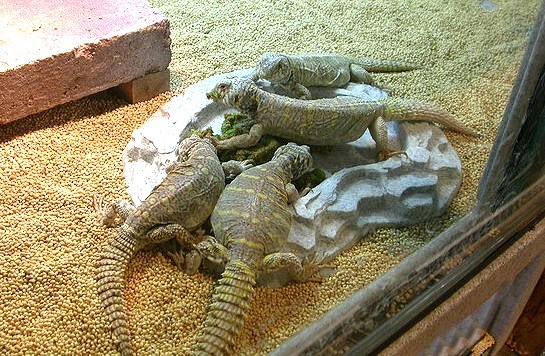 除了各種王者蜥之外,這裡也養著少量的四趾陸龜和黃金歐洲陸龜,因為這兩種陸龜需要的環境和食物都差不多,另外還養了一種美國本土的沙漠鬣蜥,Chuckwalla圓尾鬣蜥(Sauromalus屬)也稱為飛鼬蜥,這種鬣蜥的繁殖條件也和王者蜥差不多。