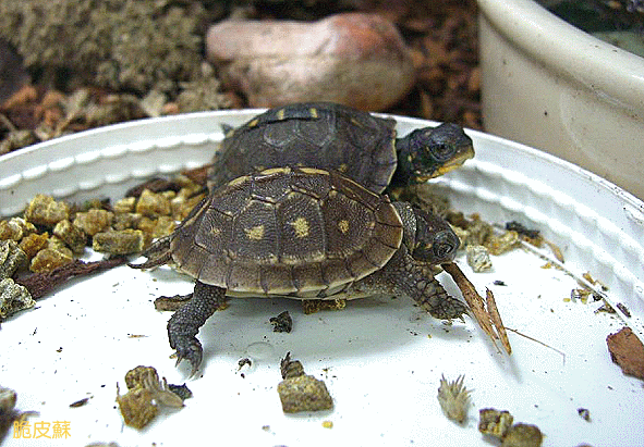 這是一隻渴到不行的小豹龜,我看他把身體埋在水裡,超過五分鐘