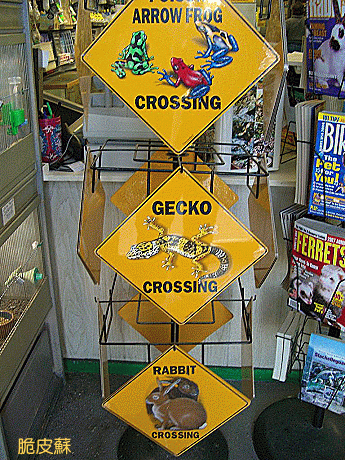 這一家店賣比較多的是蛇,他們的標語是 “I Brake for Snakes!”,意思是為了蛇,在店門口踩煞車,進來逛逛。