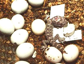 雄性的泄殖腔有兩個圓形凸起                        松尾守宮產下硬殼蛋孵化較容易