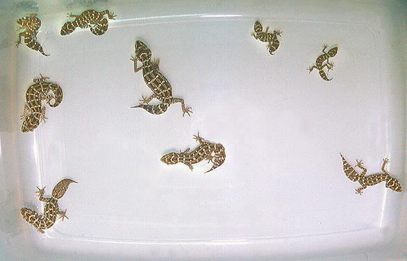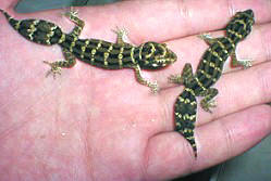 松尾守宮體型嬌小這是一對成體左雄右雌                                  肥大的尾部是健康指標